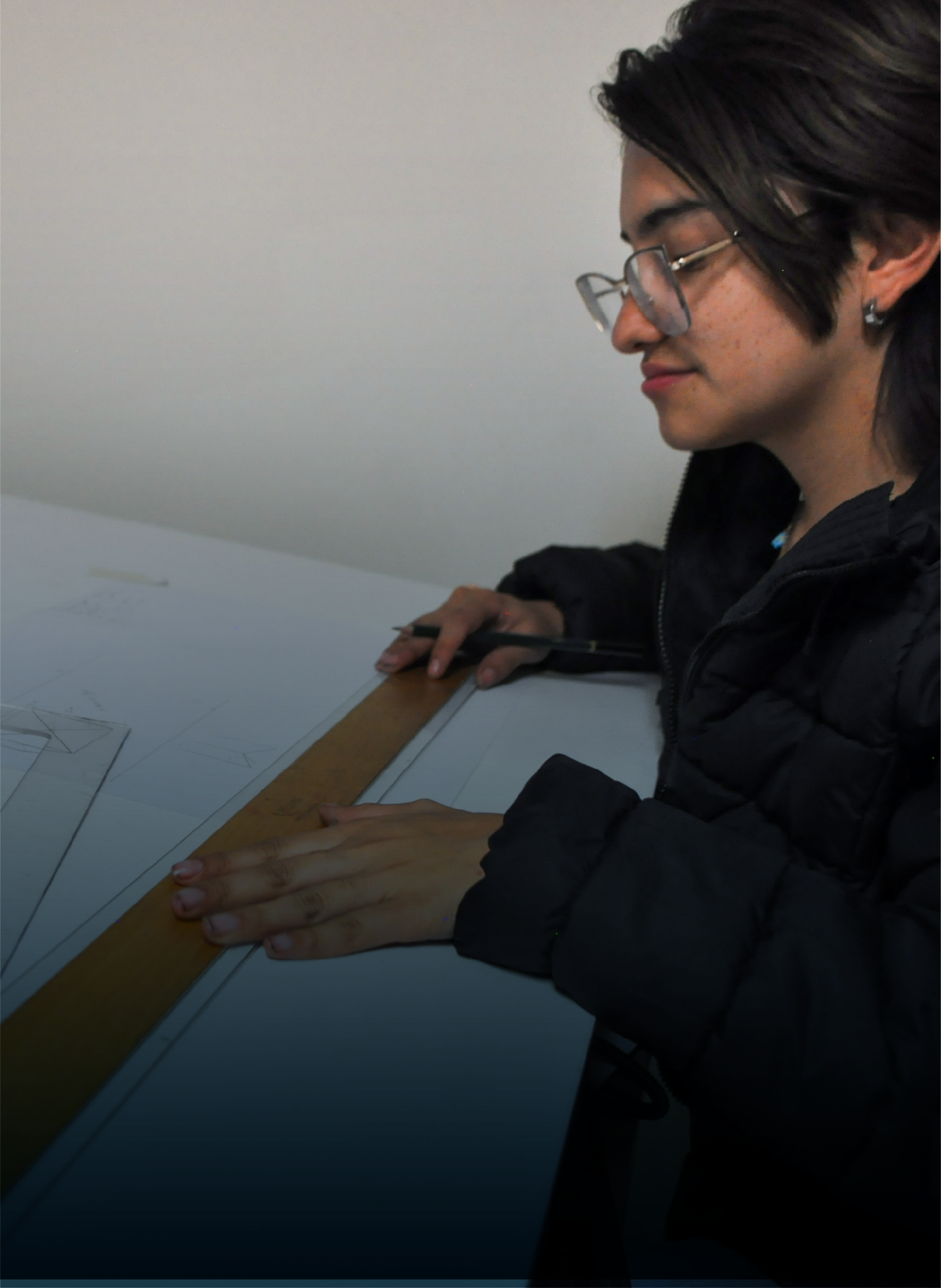 Es el espacio donde el estudiante de arquitectura transmite sus ideas a través de este arte gráfico donde se utilizan mesas de vidrio para trazos limpios y cortes con herramientas especiales.